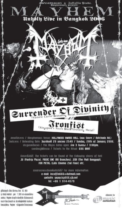 Surrender of Divinity speelde overigens in het voorprogramma, toen Mayhem op 29 januari jl. Bangkok aandeed.