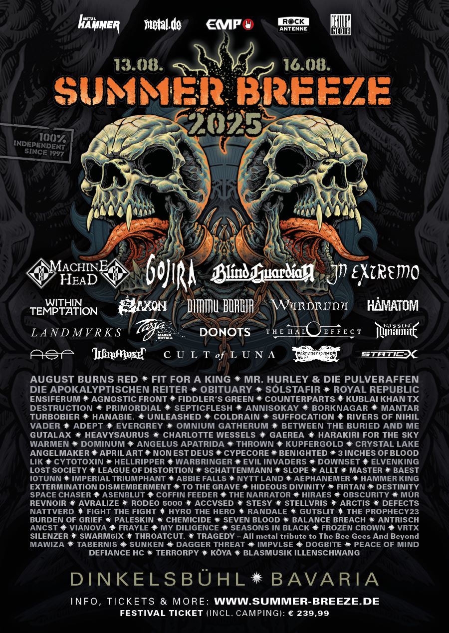 Onder metalfestivals is klaarblijkelijk de trend ontstaan om daags nadien al een eerste golf namen te droppen voor de volgende editie. Summer Breeze dat van 13 tot en met 16 augustus 2025 doorgaat in het Zuid-Duitse Dinkelsbühl doet dapper mee en loste onderstaande lading.