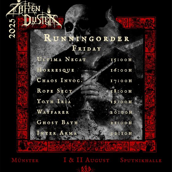 Als je ook maar een klein beetje geïnteresseerd bent in donkere klanken is het zaak om onderstaande in je op te nemen. Waarom? Nou, er staat wederom een editie van het bijzondere Zappenduster Festival op de agenda en het kan zijn dat je dit nog niet gezien hebt. Een trip richting Duitsland is een heel goede optie naar onze mening. Op vrijdag 1 en zaterdag 2 augustus is de aankomende editie.