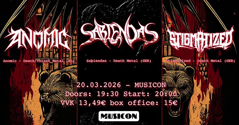 20 maart melden zich drie fijne deathmetalorkestjes in Den Haag om Musicon op zijn grondvesten te laten schudden: het compromisloze Sabiendas, het nog jonge death/thrashgezelschap Anomic en het rauwe Stigmatized. Het wordt woest en extreem, het wordt technisch en agressief, het wordt heerlijk. Zware Metalen geeft kaartjes weg!