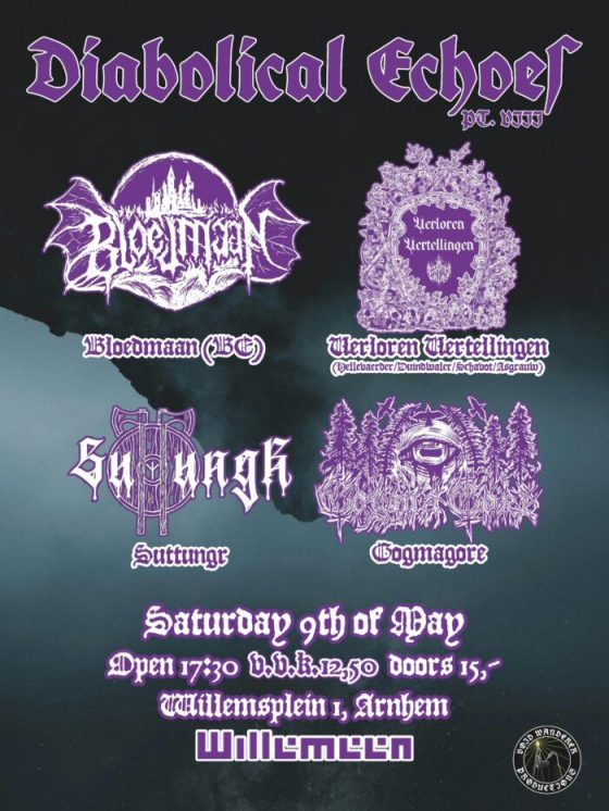 Alle Nederblekkies verzamelen: 9 mei staat er een unieke aflevering van Diabolical Echoes te wachten. Op de VIII-editie in Willemeen in Arnhem is er Verloren Vertellingen, het gezamenlijke project van Hellevaerder, Duindwaler, Schavot en Asgrauw. Verder treden Bloedmaan, Suttungr en Gogmagore op om eer te betuigen aan historie, folklore, vampiers en natuurlijk De Gehoornde Heer. Zware Metalen geeft kaartjes weg!